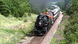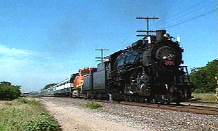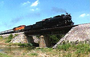 Follow steam locomotive Frisco 1522 on an historic journey through Texas as she pulls Burlington Northern Santa Fe's Employee Appreciation Special. Starting in Ft. Worth, the train headed south through Temple and on to Houston and Silsbee a whole new territory for this powerful 4-8-2 Mountain-type locomotive. The 1522 got a good workout, producing intense bursts of stack talk while lugging 16 gleaming passenger cars through the Texas Hills. She performed flawlessly, highballing over former Santa Fe track at incredible speeds.